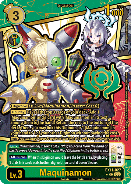 If DNA digivolving into this one you can also link up to 3 Maquinamon cards to it! This has the potential to increase the DP to as much as 21000 and protect it from deletion up to 3 times.