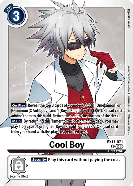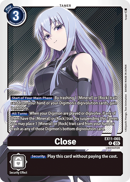 3. The new effect activation condition “when this Digimon wins a battle” introduced this set can even activate when winning a battle against a security Digimon. If you combine this with [EX11-062 Shoto Kazama] it’s possible to go on the offensive even when your opponent has no Digimon in play. This is a unique feature of this deck and its biggest strength.