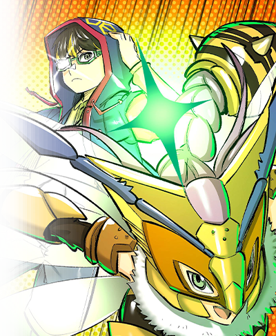 This shining wind will light the future with victory! Stand strong with Vortexdramon to overcome any barriers in your way!