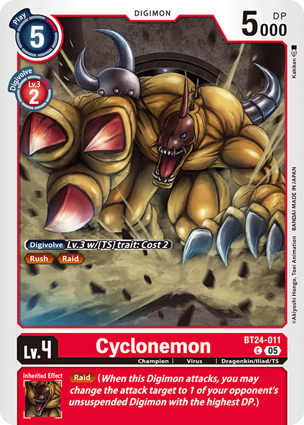It’s a simple Digimon card to use as the only effects are <Rush> and <Raid>, and is also very helpful as one more to help corner the opponent and smash away weak Digimon!