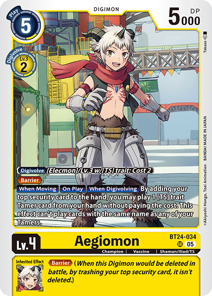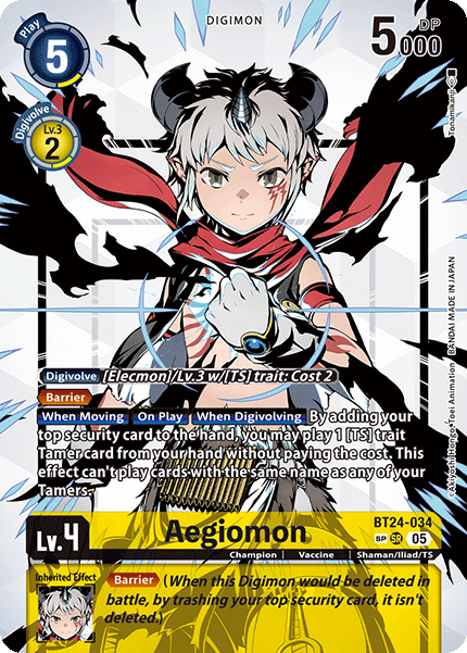 - 1. First use [BT24-035 Aegiomon] to play [BT24-084 Inori Misono]. Then use [BT24-031 Elecmon]’s inherited effect to reduce your own security and activate Inori’s effect, which lets you digivolve into Aegiochusmon and steadily attack the opponent’s security.