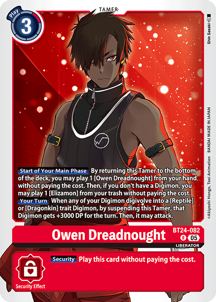 With this card’s [On Play]/[When Digivolving] effect you can exchange one of your security cards for use of a powerful DP reducing effect. In addition, if you have 1 or fewer cards in your security stack this effect grants you <Recovery +2 (Deck)>, which is great when you’re in a pinch!