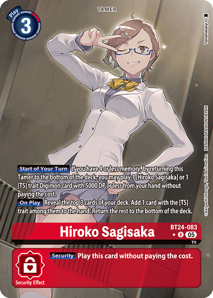 At the [Start of Your Main Phase] you’re guaranteed 1 extra memory! Another effect of this card gives all your [TS (Time Stranger)] trait Digimon +1000 DP, making it a valuable card to support all Time Stranger themed decks.