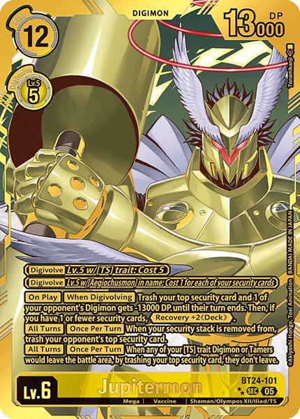 - 3. When there is a Digimon too buff for 1 Jupitermon alone, there’s other Lv.6 Olympos XII Digimon you can play for lowered costs to help you send the opponent packing. If you also use [BT24-102 Homeros]’s effect to double the [On Play] effect, this’ll be even more powerful.